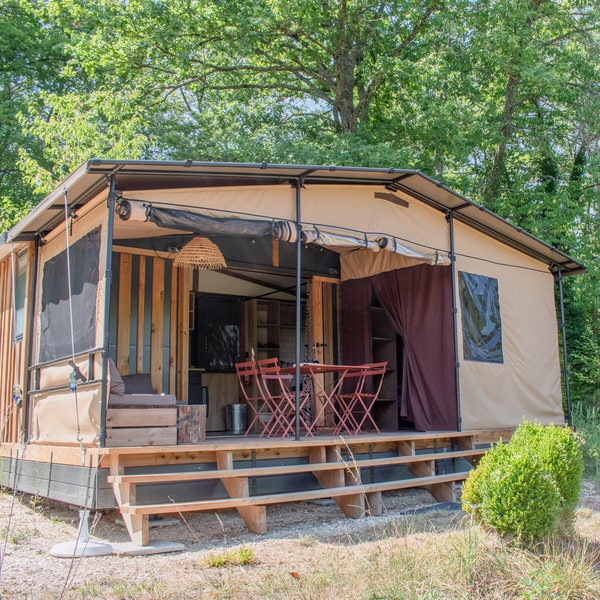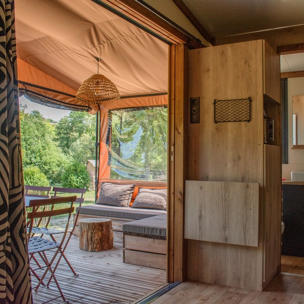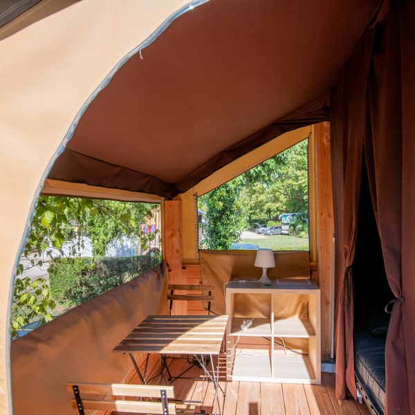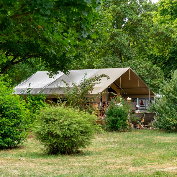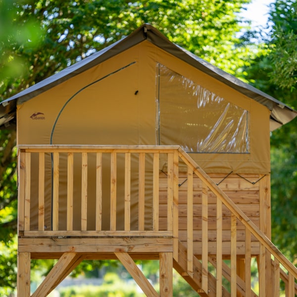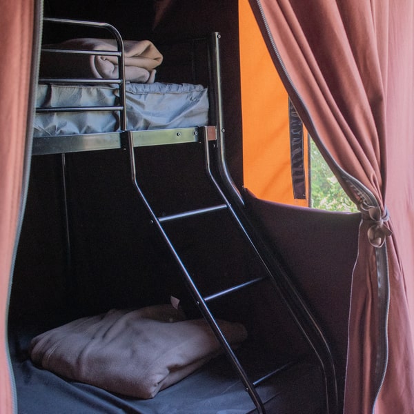 Si vous recherchiez le confort d’un hébergement prêt-à-louer sans rogner sur l’authenticité du camping, notre tente Lonna est faite pour vous : un véritable cocon en toile et bois construit sur pilotis, idéal pour les séjours-étapes en duo. Toute aménagée, vous n’avez plus qu’à vous installer et vous reposer après une journée à vadrouiller ou pédaler !