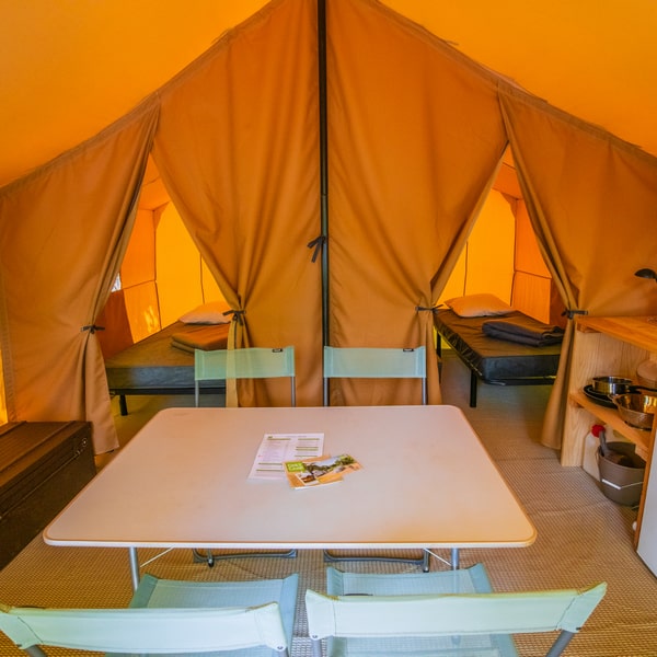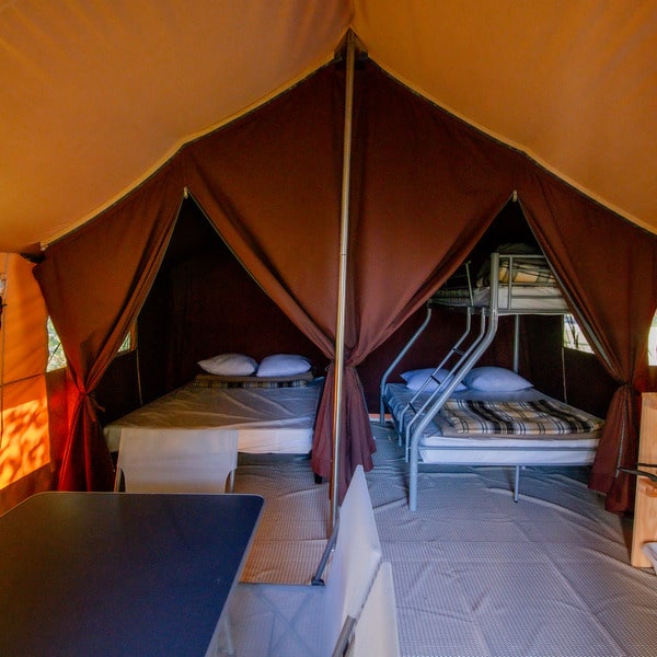 Envie de retrouver le goût de l’aventure mais sans sacrifier tout votre confort ? La tente Ponza est faite pour vous ! Pouvant accueillir 4 ou 5 personnes, elle est parfaite pour une escapade entre amis ou en famille. Spacieuse, lumineuse et bien équipée, elle vous offrira une expérience camping authentique avec une petite note douillette. Le tout à quelques pas des services du camping !